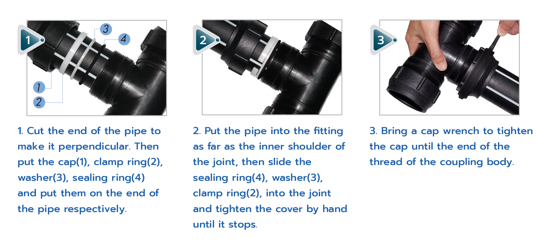 MECHANICAL JOINT system fittings are designed for use with PP pipes ranging from 40 - 250 mm. just a few steps to connect.