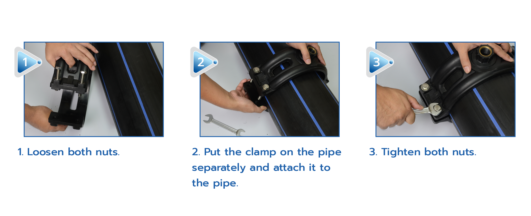How to install Saddle Clamp PBP brand for installing split pipes of HDPE pipes and PVC pipes, which can be installed saddle clamp without having to stop water supply or stop running water. in the pipe It also reduces the amount of water lost from installation. The split hose clamp can be easily installed in just a few steps.