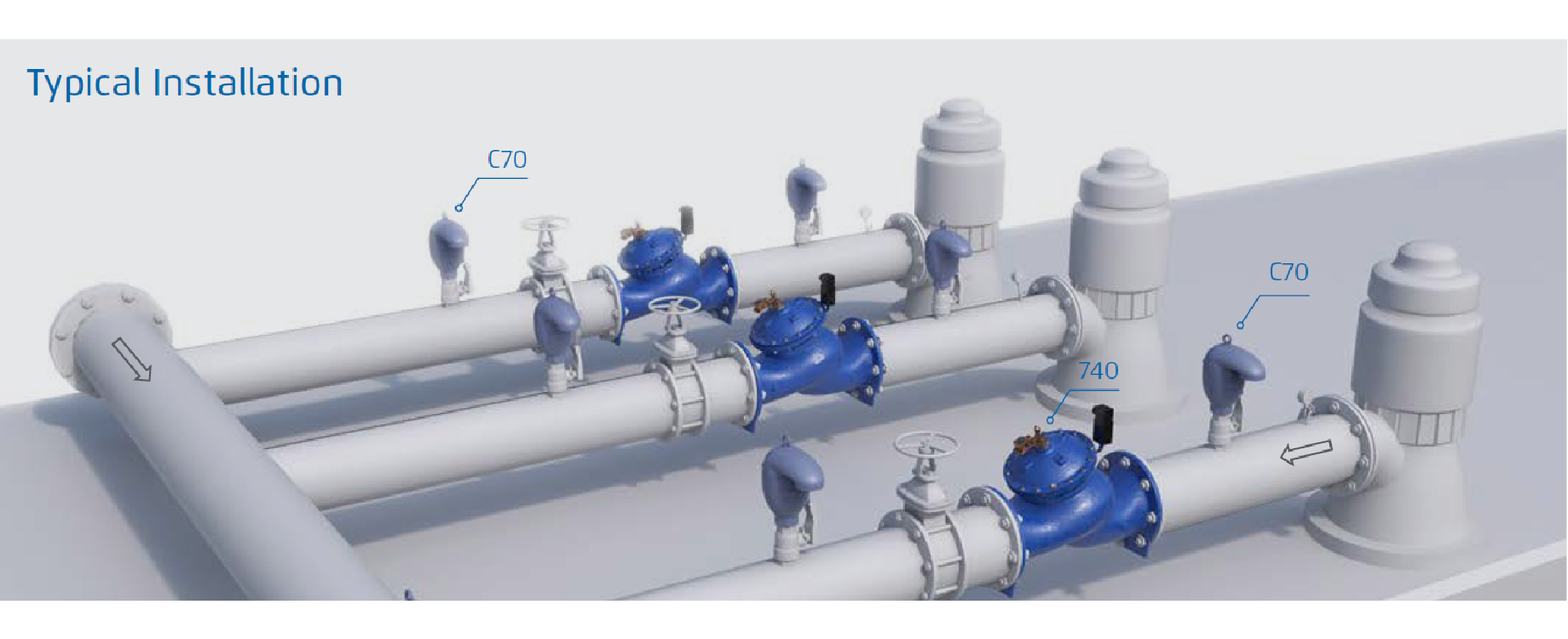 Typical Installation for Booster Pump Control Valve Quick Active Check Valve Model 740