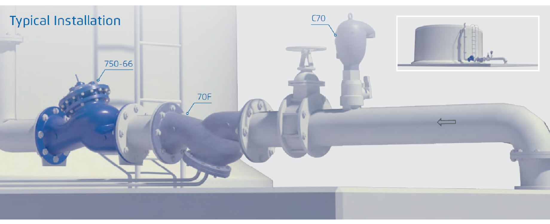 Hydraulically operated control valve that controls reservoir filling and reservoir level. The valve shuts off at a pre-set reservoir high level and fully opens in response to an approximately one meter (3 ft) level drop, as sensed by the 3-Way altitude pilot mounted on the main valve. BERMAD 700 SIGMA EN/ES series valves are hydraulic, oblique pattern, globe valves with a raised seat assembly and double chamber unitized actuator, that can be disassembled from the body as a separate integral unit. The valves hydrodynamic body is designed for unobstructed flow path and provides excellent and highly effective modulation capacity for high differential pressure applications. The valves are available in the standard configuration or with an Independent Check Feature code “2S”. The 700 SIGMA EN/ES Valves operate under difficult operation conditions with minimal cavitation and noise. They meet size and dimensions requirements of various standards. เยี่ยมชมเว็บไซต์ได้ที่ www.bermad.com