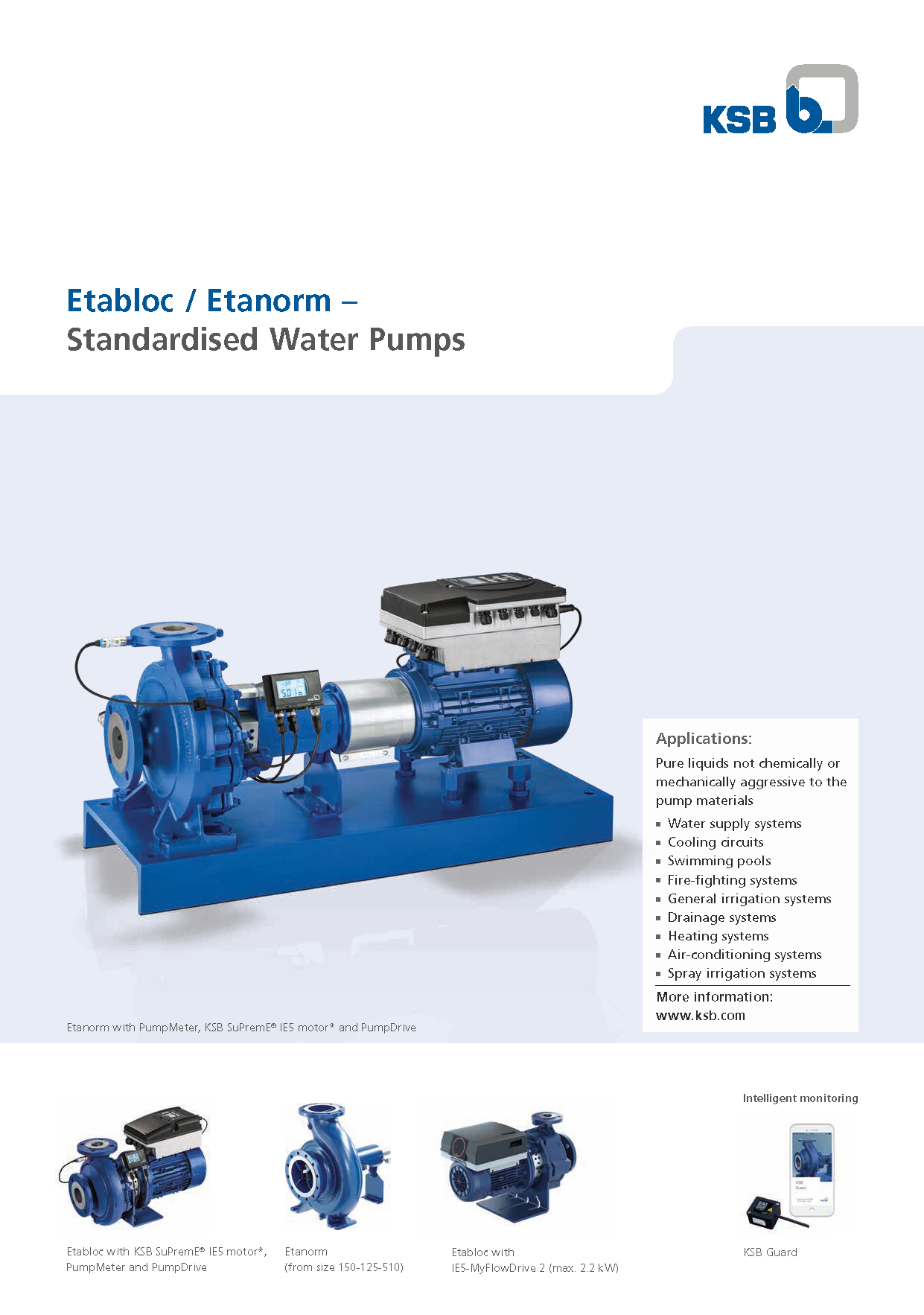 Superior hydraulic design and manufacturing methods for significantly higher efficiencies and reduced maintenance. High efficiency double curvature impeller vanes. 32 to 200mm discharge. Cast iron, zinc free bronze or stainless steel construction. Wide range of options. AS2129 Table “E” flanges as standard with optional drillings available. Back-pullout design does not require the disconnection and removal of motor or suction and discharge lines for maintenance. Heavy duty oil lubricated double row ball bearings in drive end and single row roller bearings in wet end. Taper mounted and keyed impeller. Horizontal or vertical pump discharge mounting.